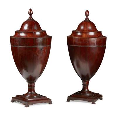 PAIR OF GEORGE III MAHOGANY CUTLERY URNS
