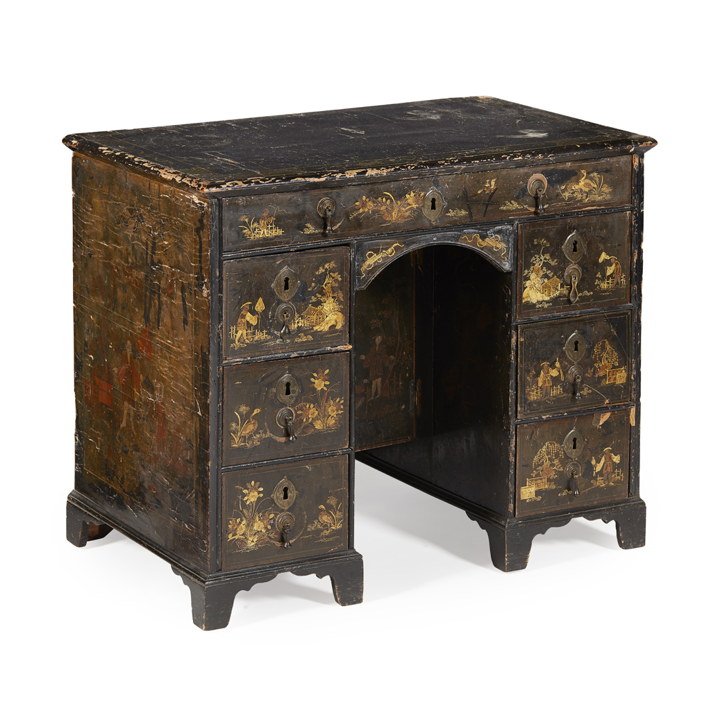 GEORGIAN BLACK JAPANNED PEDESTAL KNEEHOLE DESK