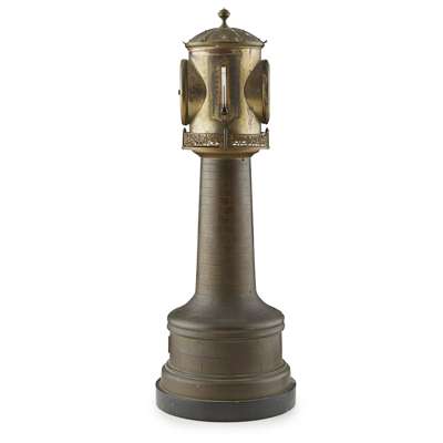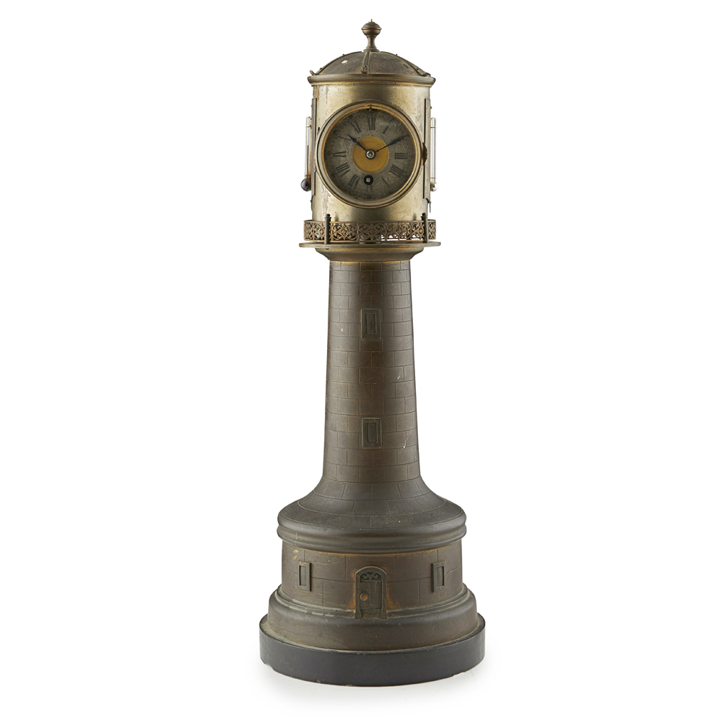 VICTORIAN BRASS AUTOMATON LIGHTHOUSE TIMEPIECE THERMOMETER/BAROMETER