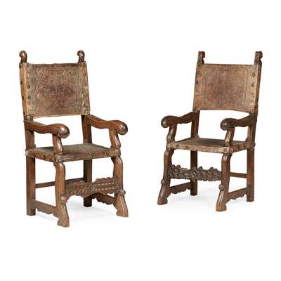 PAIR OF SPANISH WALNUT ARMCHAIRS