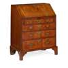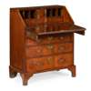 the feather and crossbanded slant front opening to an interior fitted with drawers and pigeon holes, above four crossbanded long graduated drawers, on bracket feet