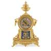 with an urn finial above lion mask loop handles and enamelled chapters depicting Roman numerals, on an ornate breakfront base with scrolled and toupie feet, the movement stamped H&F PARIS/ 7414, striking a bell