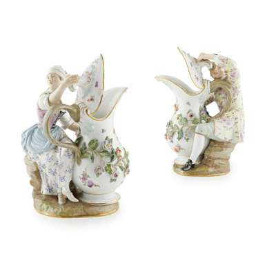 PAIR OF MEISSEN PORCELAIN FIGURAL EWERS