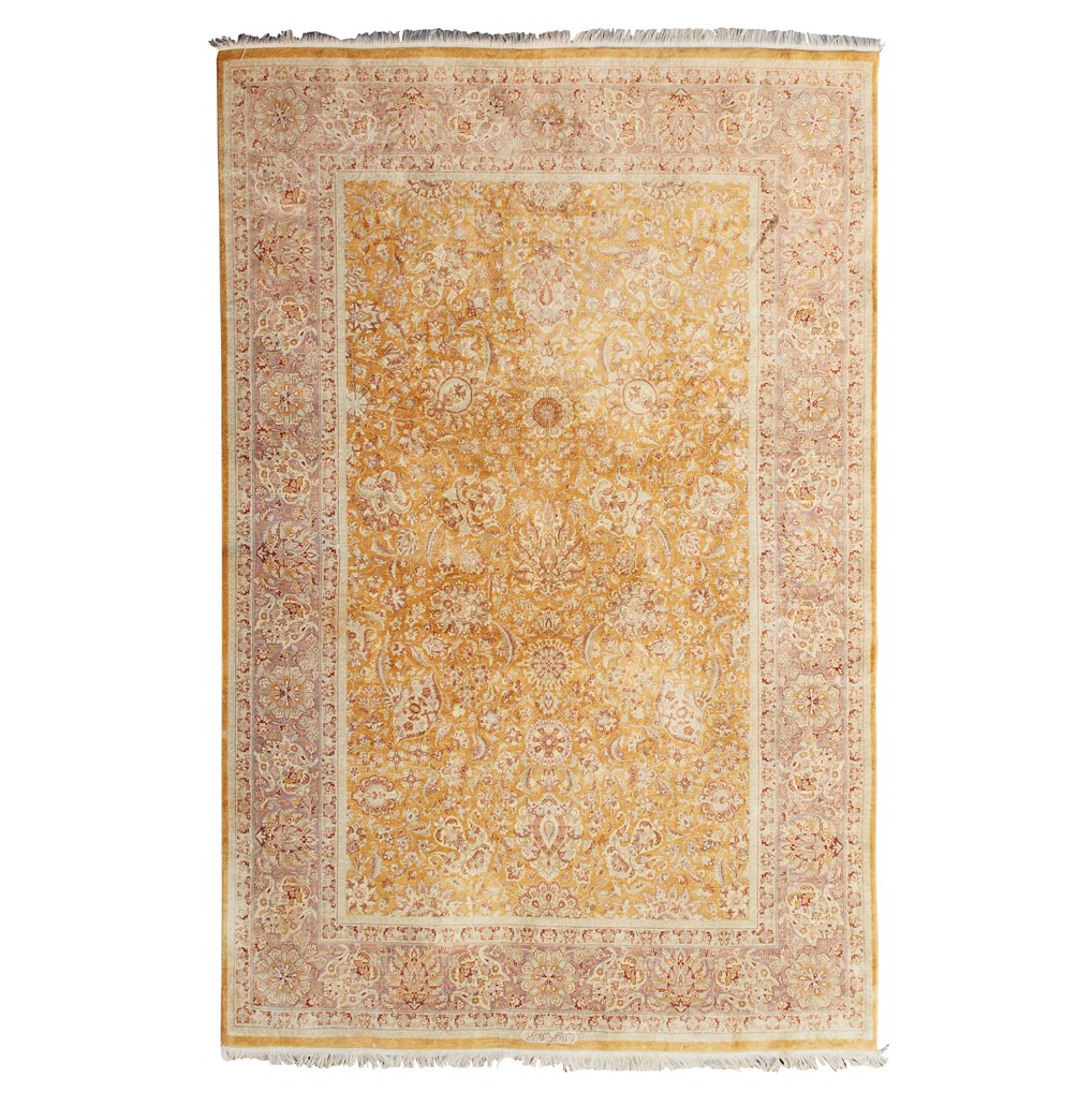 the gold field with allover foliate pattern, within light purple palmette and foliate border
