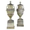 PAIR OF LARGE COMPOSITION AND CAST STONE GARDEN URNS AND PEDESTALS