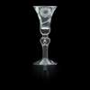 the tapered trumpet bowl finely engraved with displayed open rose head flanked by closed and opening buds and foliage, raised on a swollen air bubble knopped stem above a short straight stem and spreading slightly domed circular foot