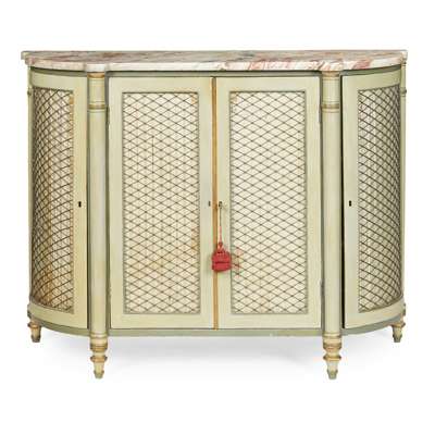 REGENCY GREEN PAINTED AND MARBLE TOP SIDE CABINET