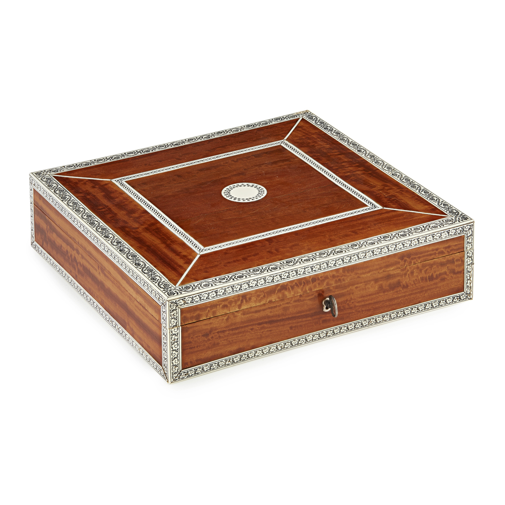 ANGLO-INDIAN SATINWOOD, SANDALWOOD, IVORY AND PENWORK BOX Y