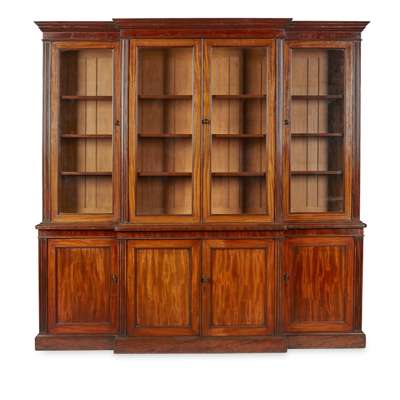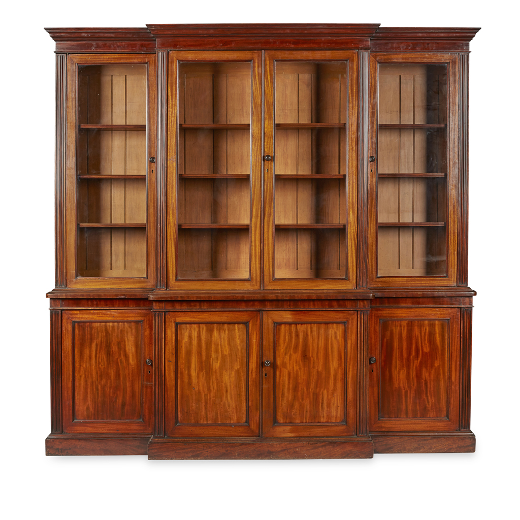 EARLY VICTORIAN MAHOGANY BREAKFRONT BOOKCASE