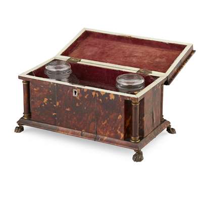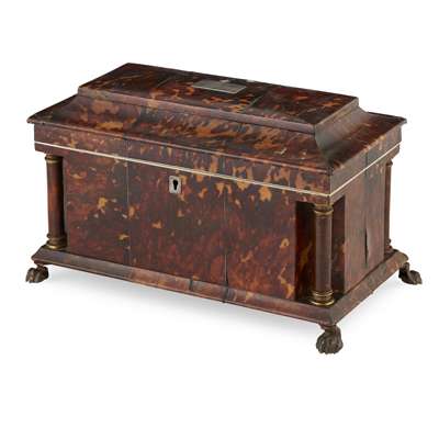 LARGE REGENCY TORTOISESHELL AND IVORY TEA CADDY Y