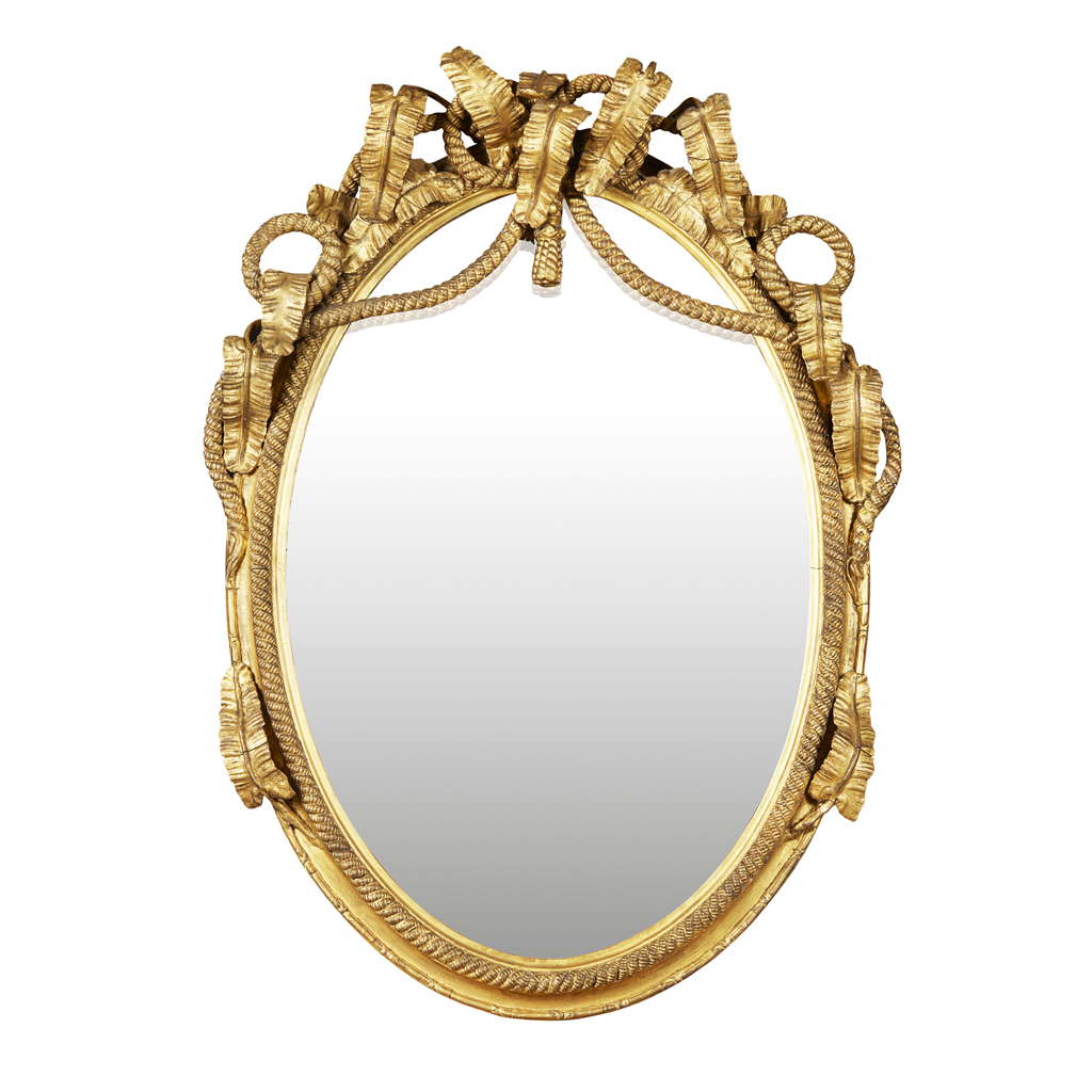 the oval mirror plate in a moulded frame with rope and fern cresting