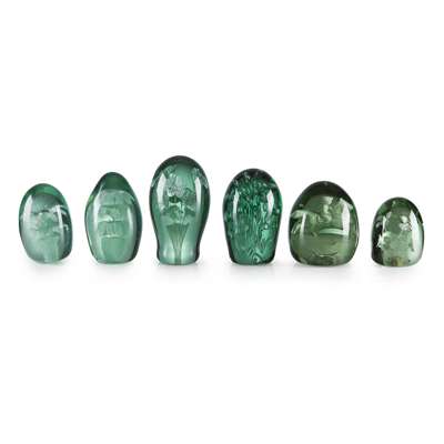 SIX VICTORIAN GREEN GLASS 'DUMP' PAPERWEIGHTS
