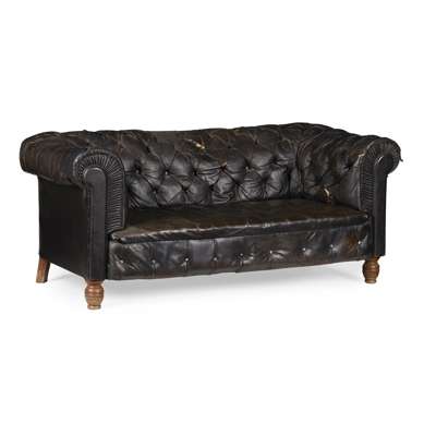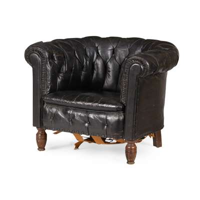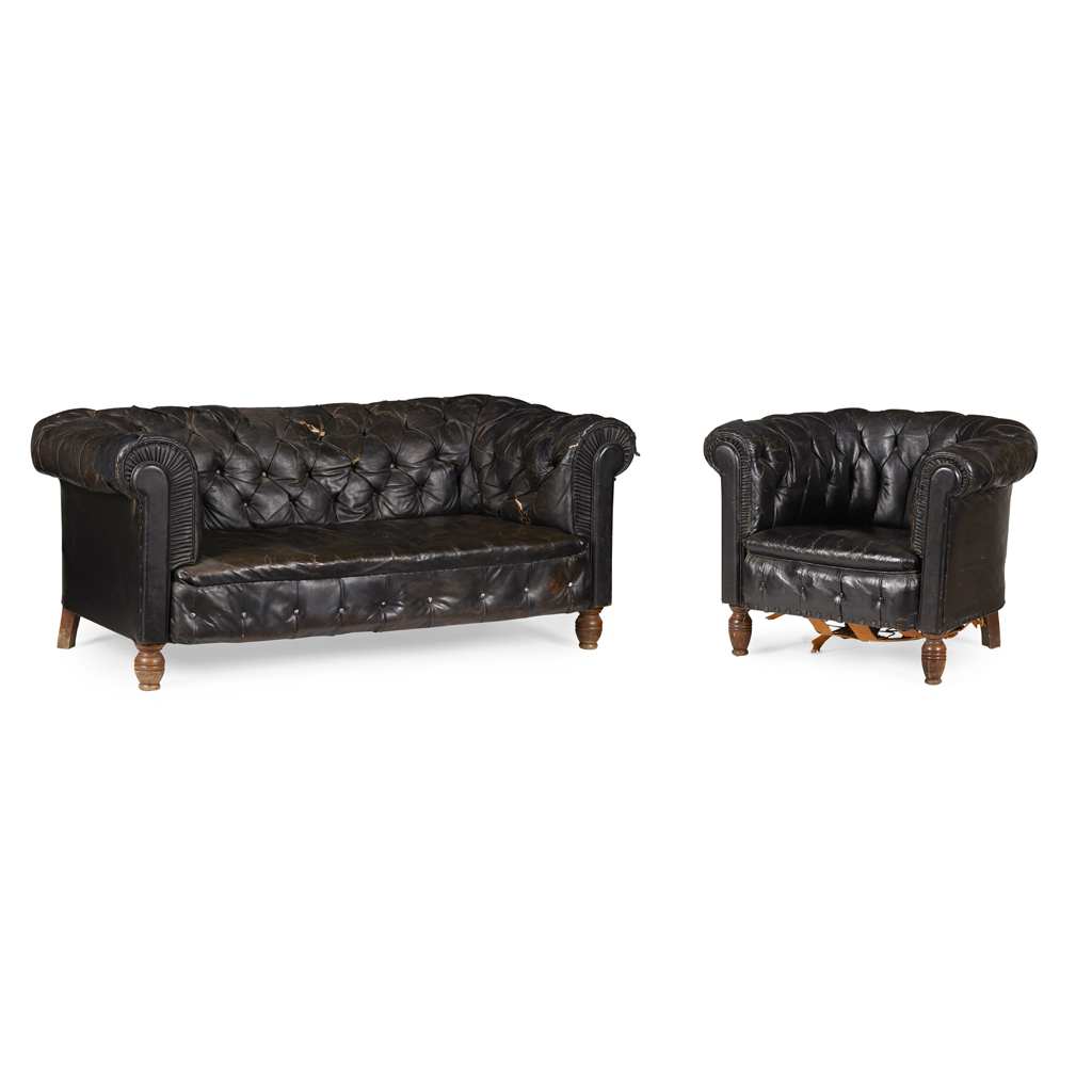 VICTORIAN LEATHER CHESTERFIELD AND ARMCHAIR