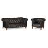 Chesterfield 173cm wide, 75cm high, 85cm deep; armchair 90cm wide, 70cm high, 84cm deep