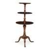 with three dished circular tiers raised and divided by turned balusters, on a tripod base ending in paw feet