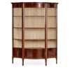 the central serpentine glazed panel door enclosing shelves and flanked by curved glazed sides panels, raised on square tapering legs with spade feet