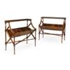 the hinged cove-moulded tops above compartmented troughs, raised on ring-turned legs joined by cross stretchers raised on pad feet (2)