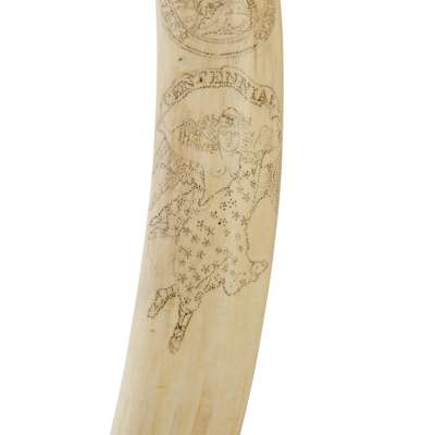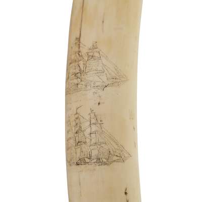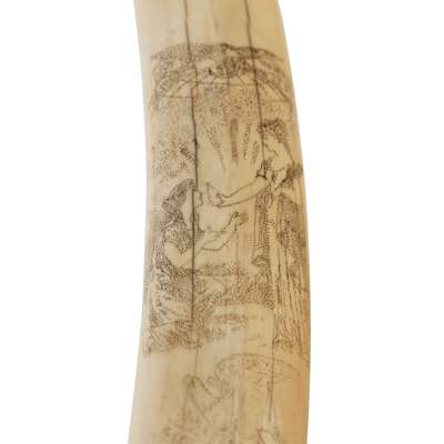 RARE PAIR OF AMERICAN SCRIMSHAW WALRUS TUSKS Y