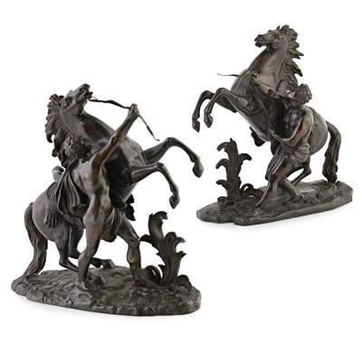 PAIR OF MARLY HORSE FIGURE GROUPS