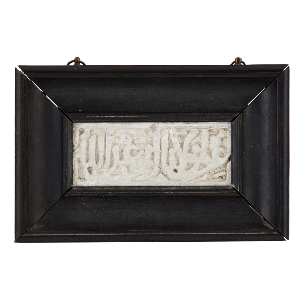 in an ebonised frame with a handwritten label verso ALLAH IS THE CONQUEROR