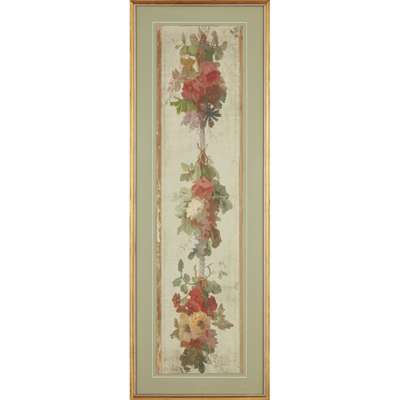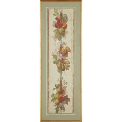 comprising two strip panels, one with fruit, the other with flowers, framed (2)