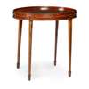 LATE GEORGE III MAHOGANY, KINGWOOD AND SATINWOOD OVAL TRAY TOP TABLE