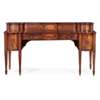 the superstructure with sliding compartments over a shaped top, above three frieze drawers flanked by deep drawers, raised on square tapered legs ending in spade feet