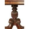 the rectangular crossbanded top above a bead moulded frieze, raised on a turned and reeded knopped pedestal with outswept reeded legs ending in brass paw caps and castors