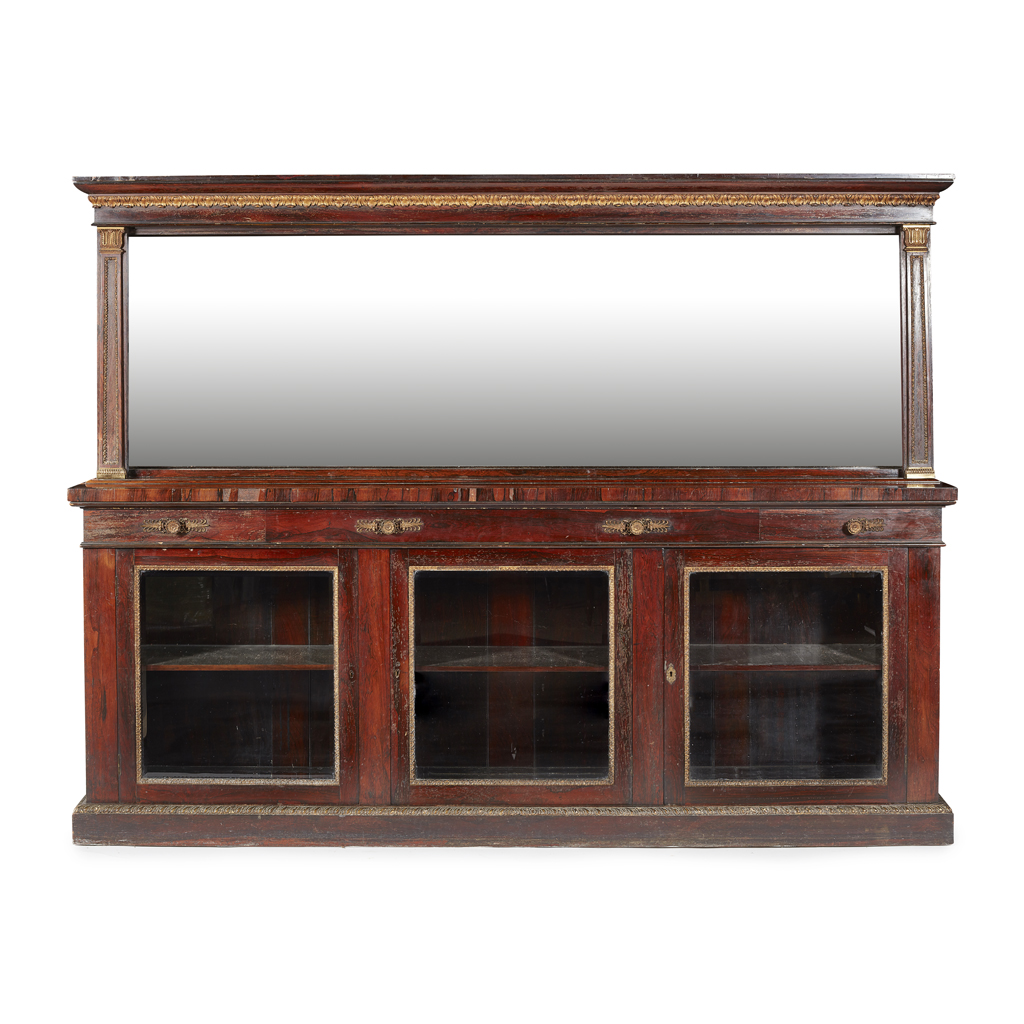REGENCY ROSEWOOD AND PARCEL GILT MIRROR-BACK DISPLAY CABINET Y