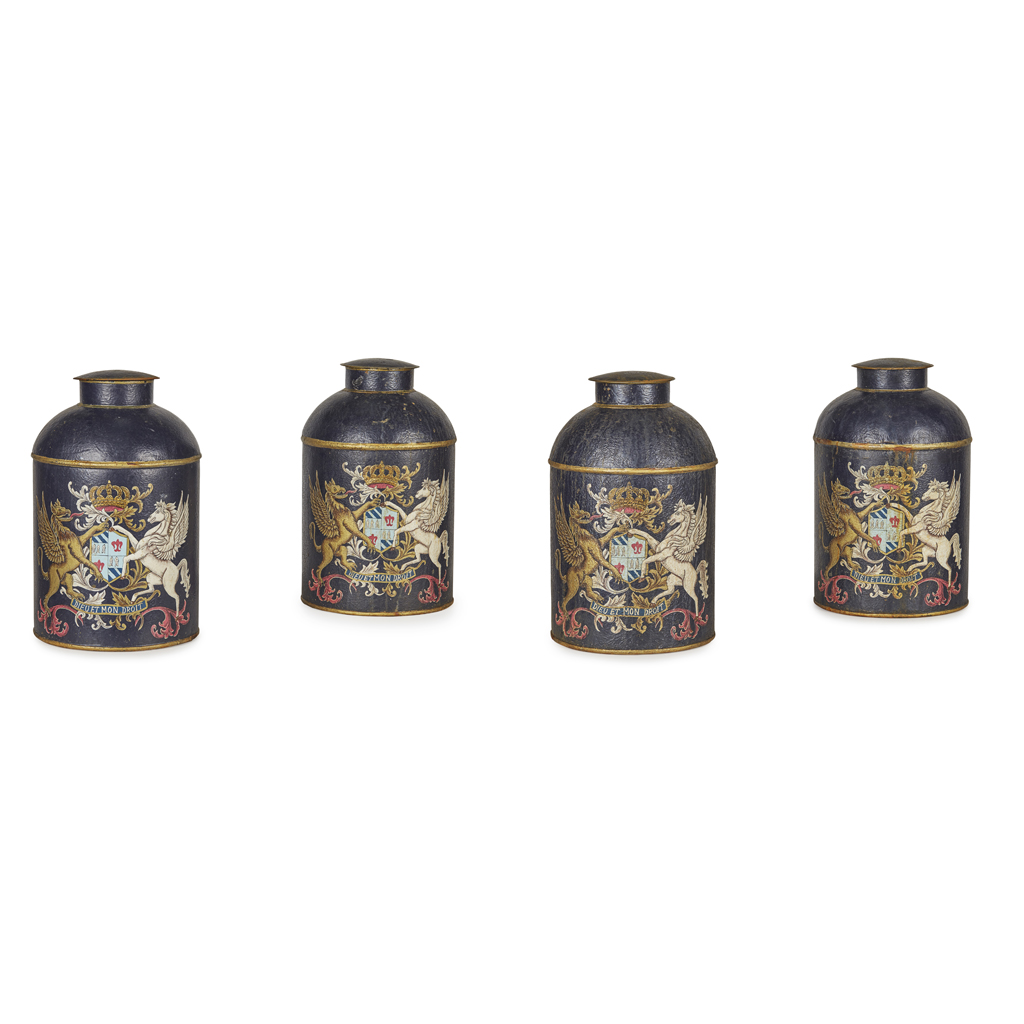 SET OF FOUR TOLE TEA/TOBACCO CANISTERS