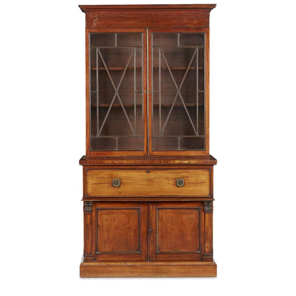 WILLIAM IV MAHOGANY AND SATINWOOD SECRETAIRE BOOKCASE