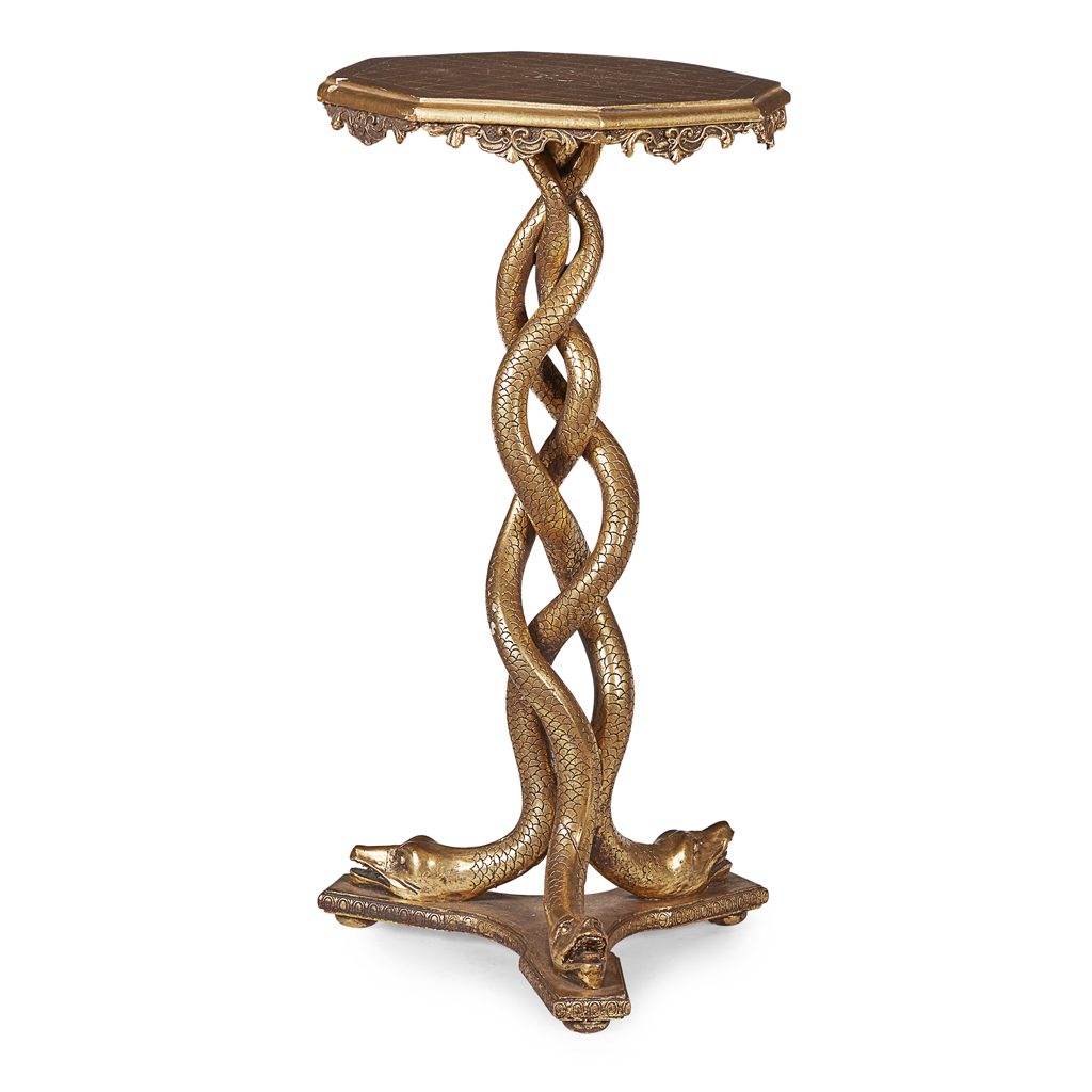 the octagonal top raised on three intertwined serpent supports on a triform base