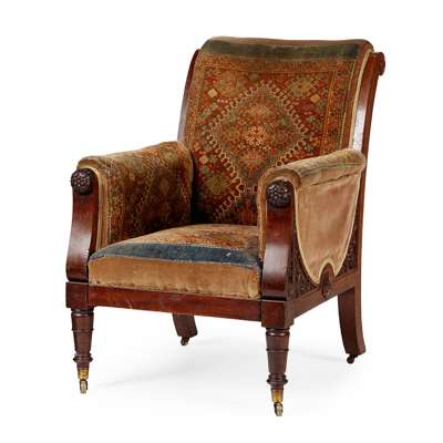 GEORGE IV MAHOGANY FRAMED ARMCHAIR