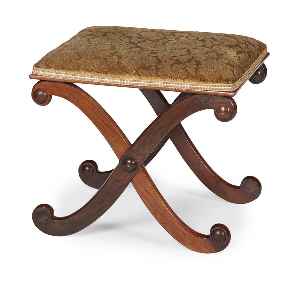 REGENCY ROSEWOOD FRAMED FOOTSTOOL, AFTER A DESIGN BY THOMAS HOPE Y