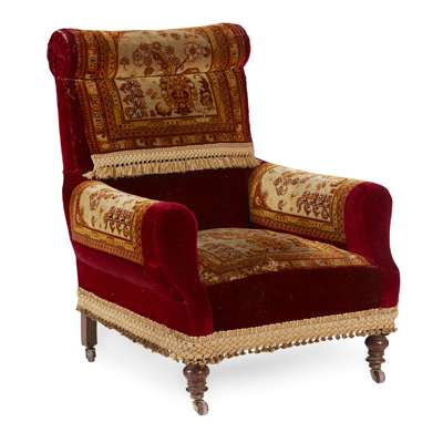 EARLY VICTORIAN CARPET ARMCHAIR