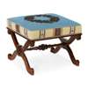 the needlework upholstered square seat , with border fabric by Madeleine Castaing, raised on foliate carved X-shaped supports joined by a turned stretcher