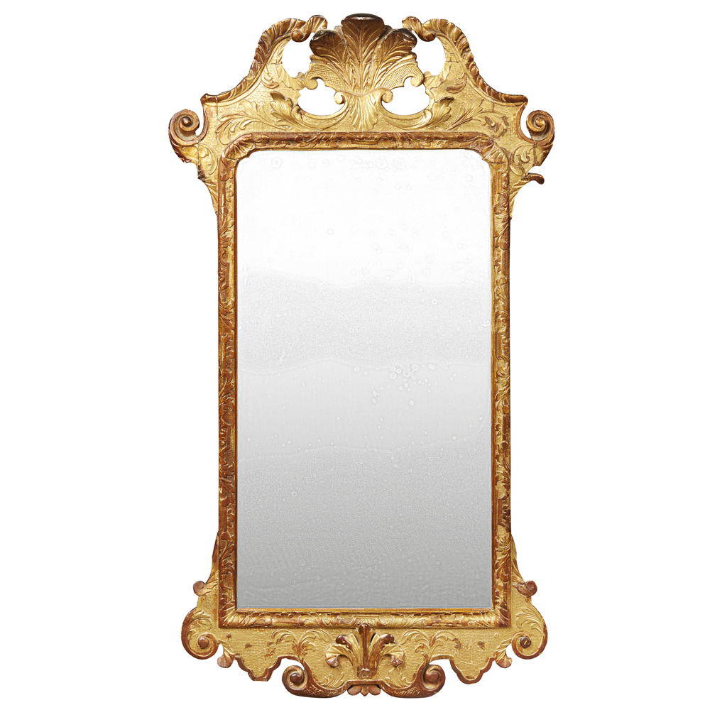 IRISH GEORGE II WALNUT AND GILT MIRROR