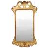 the rounded rectangular mirror plate in a moulded gilt frame with swan neck scroll cresting centred by carved plumes, the pendant with foliate scrolls and a palmette motif