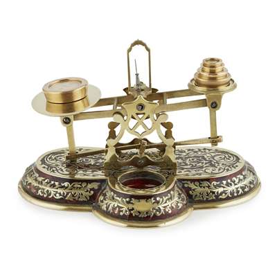 SET OF TORTOISESHELL AND BRASS 'BOULLE' POSTAL SCALES, S. MORDAN & CO., LONDON Y
