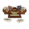the domed hinged box with brass mounts opening to a fitted interior with playing cards, raised on a moulded square stand with ivorine and ebony counter panels