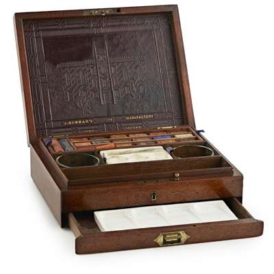 MAHOGANY PAINT BOX, J. NEWMAN'S MANUFACTORY, LONDON
