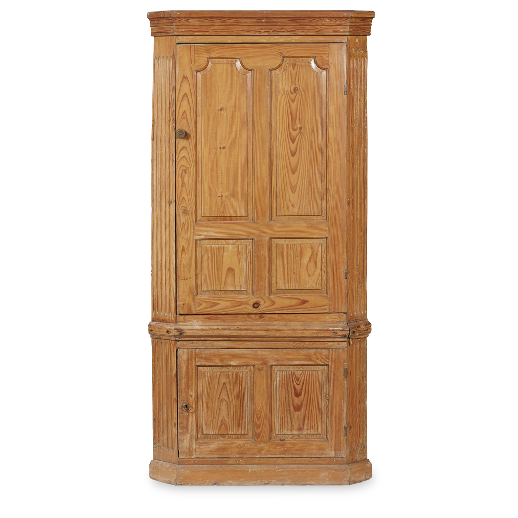 the moulded cornice over a four panel door flanked by reeded angles; the base with a double panel door, on a plinth base