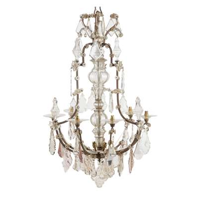 CONTINENTAL IRON AND CUT GLASS BIRDCAGE SIX BRANCH CHANDELIER