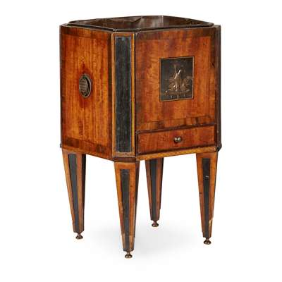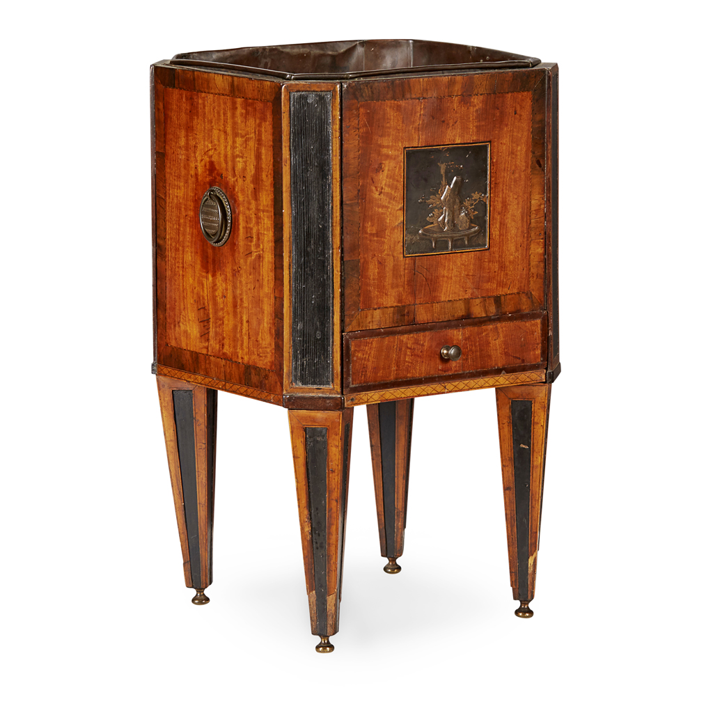 DUTCH SATINWOOD, EBONISED AND CHINESE LACQUER JARDINIÈRE