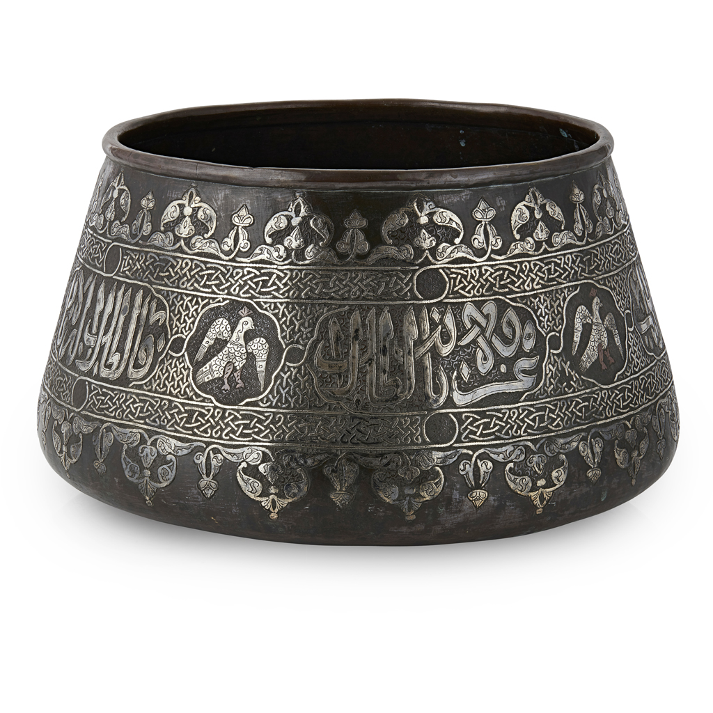 MAMLUK REVIVAL TINNED COPPER, SILVER AND BRASS BOWL