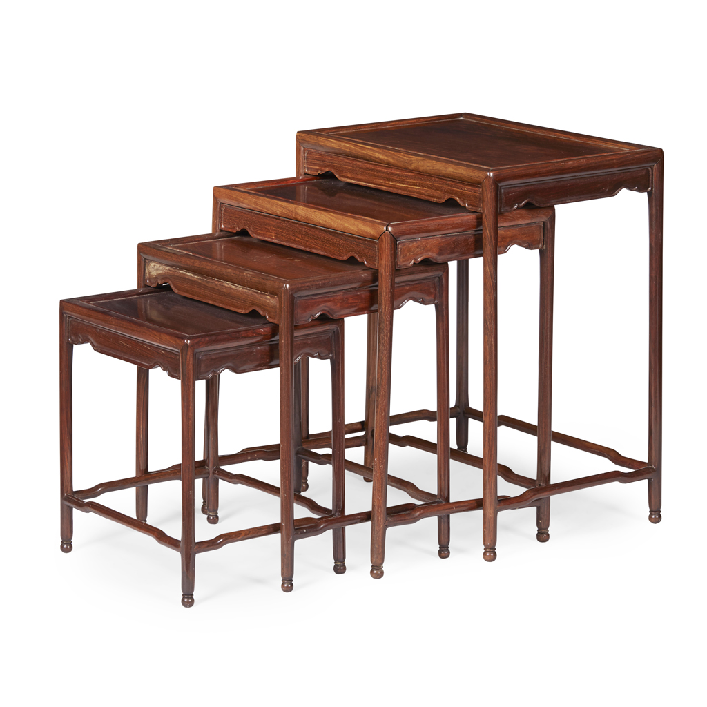 SET OF CHINESE HARDWOOD QUARTETTO TABLES