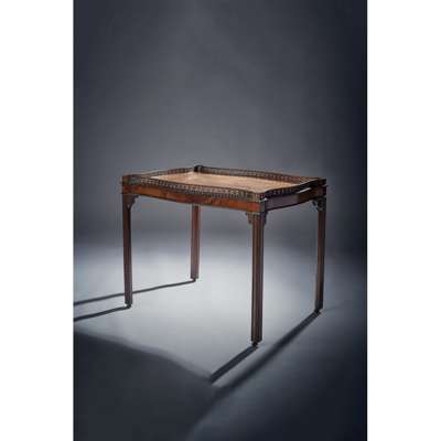 FINE GEORGE III SERPENTINE MAHOGANY SILVER TABLE