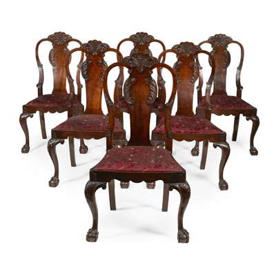 SET OF EIGHT GEORGE I STYLE MAHOGANY DINING CHAIRS