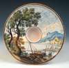 signed by Carmine Gentile (1678 - 1763), probably 2nd decade of the 18th century, painted on the broad rim with views of a shore with ships and figures, the outer and inner rim edged with thin bands in brown and orange, the reverse inscribed "GENTILI.P", attached torn label "T G and Co.", rim cracked in two sections and rivited (on the reverse)