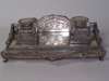 the back with segmental pediment above husk swagged frieze, the basket with serpentine bar front flanked by brass balusters with urn finials, on tapering plinths joined by Vitruvian scrolled apron
